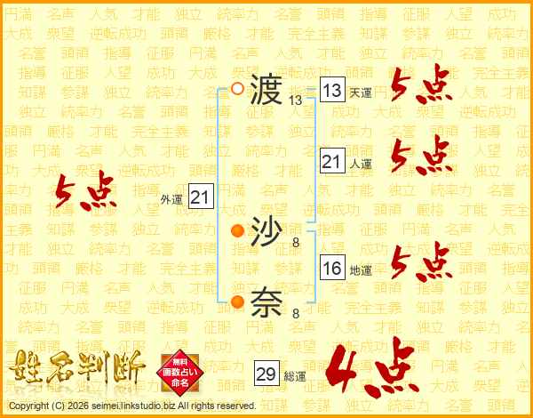渡沙奈さんの総運は29画の4点!