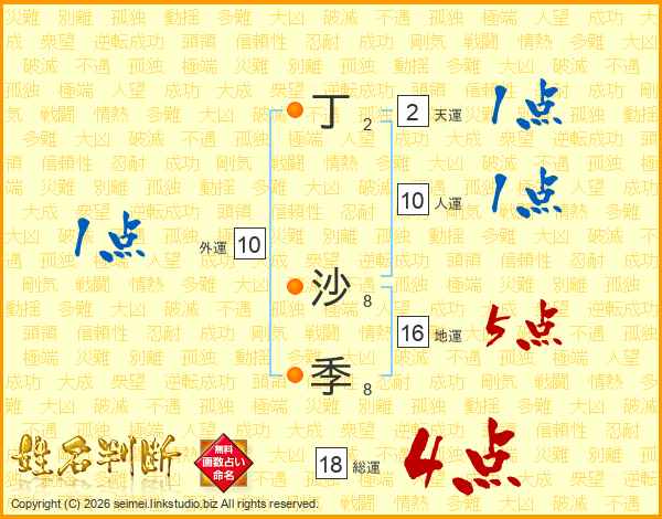 丁沙季さんの総運は18画の4点!