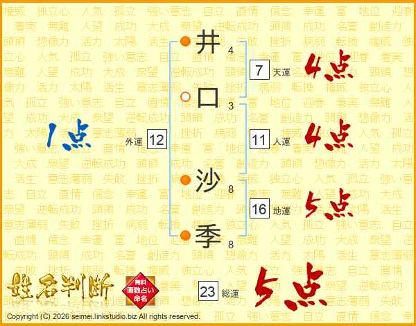 井口沙季さんの総運は23画の5点!