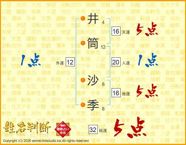 井筒沙季さんの総運は32画の5点!
