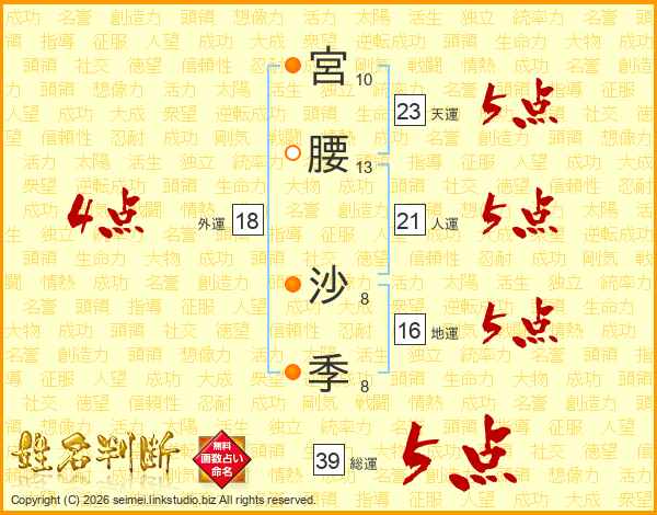 宮腰沙季さんの天運は23画の5点!