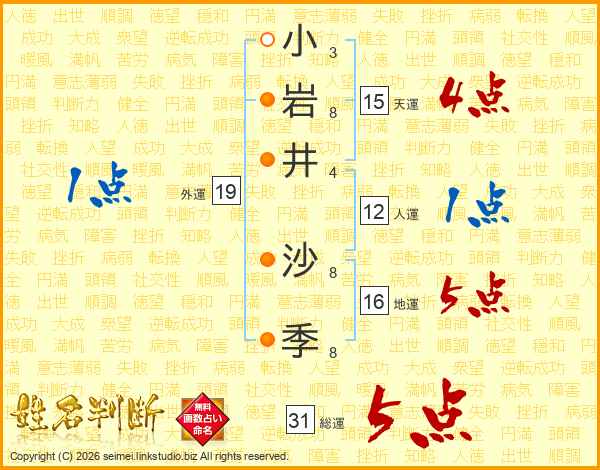 小岩井沙季さんの総運は31画の5点!