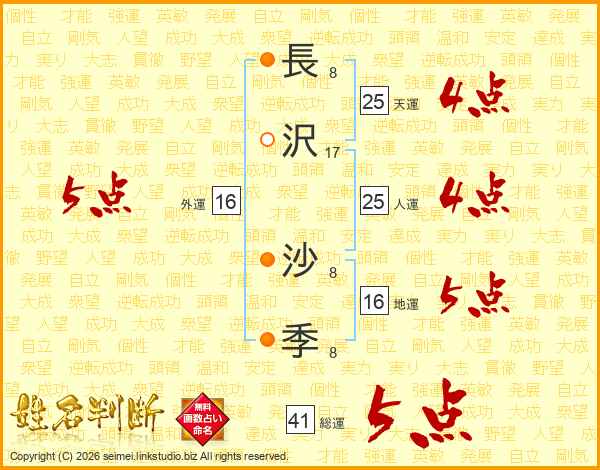 長沢沙季さんの総運は41画の5点!