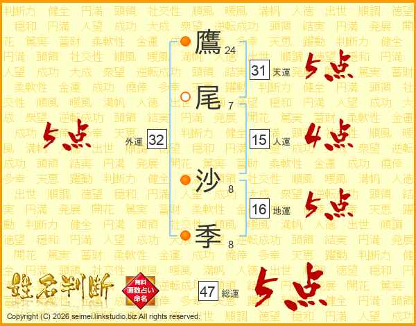 鷹尾沙季さんの外運は32画の5点!
