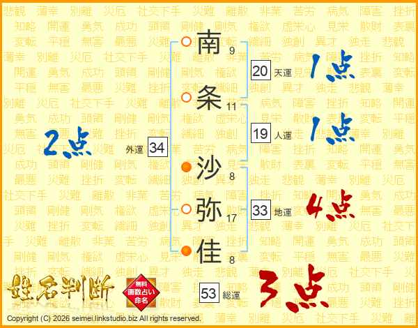 南条沙弥佳さんの総運は53画の3点!
