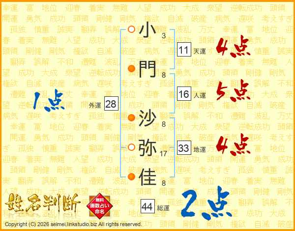 小門沙弥佳さんの総運は44画の2点!