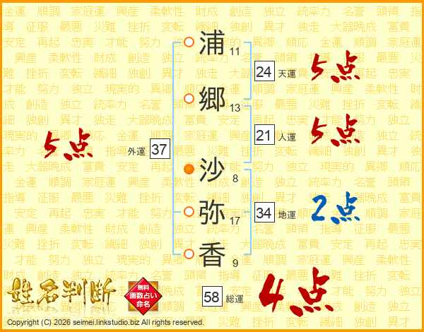 浦郷沙弥香さんの総運は58画の4点!