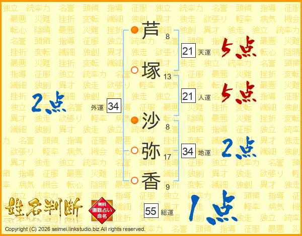 芦塚沙弥香さんの天運は21画の5点!