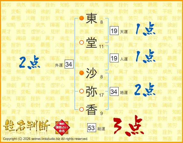 東堂沙弥香さんの総運は53画の3点!