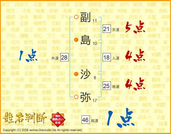 副(11画)島(10画) 沙(8画)弥(17画)