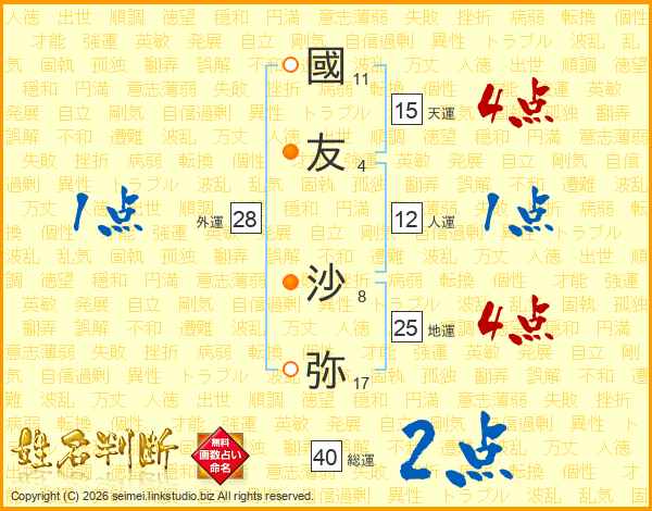 國友沙弥さんの地運は25画の4点!