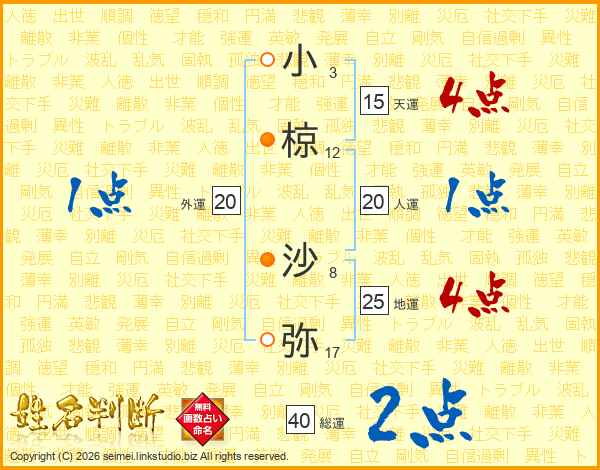 小(3画)椋(12画) 沙(8画)弥(17画)