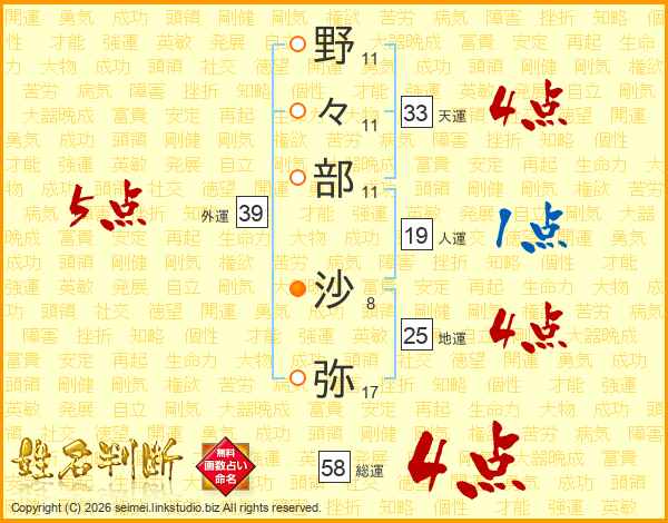 野々部沙弥さんの総運は58画の4点!