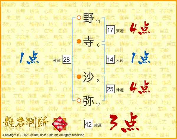 野寺沙弥さんの天運は17画の4点!
