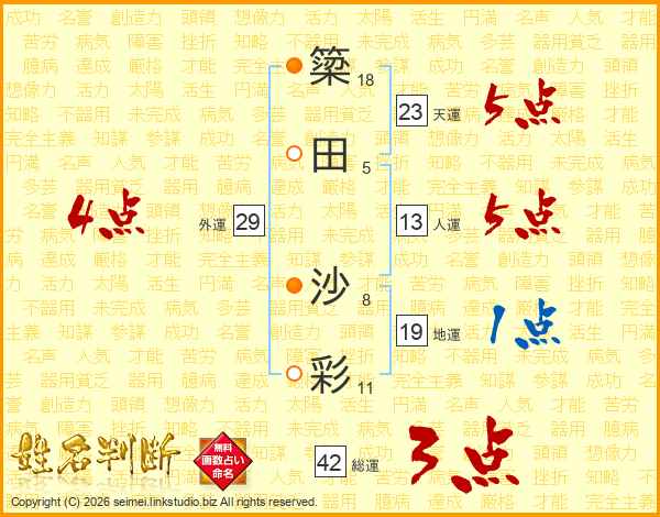 簗田沙彩さんの天運は23画の5点!