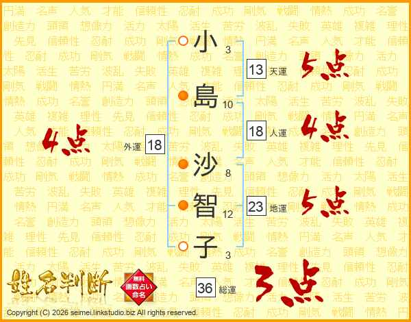 小島沙智子さんの総運は36画の3点!