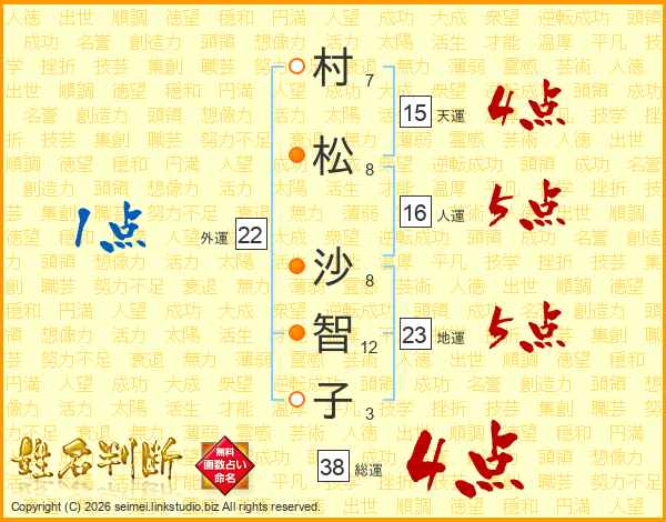 村松沙智子さんの天運は15画の4点!