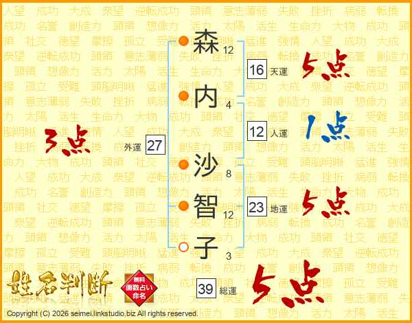森内沙智子さんの総運は39画の5点!