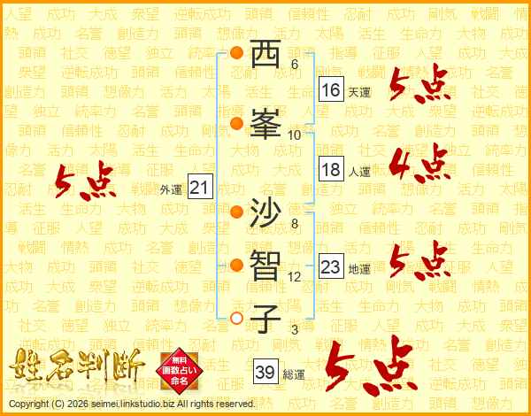 西峯沙智子さんの外運は21画の5点!