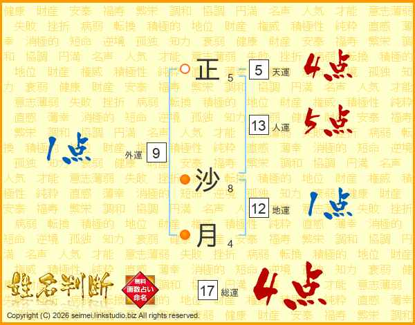 正沙月さんの総運は17画の4点!