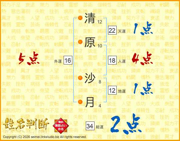 清原沙月さんの総運は34画の2点!