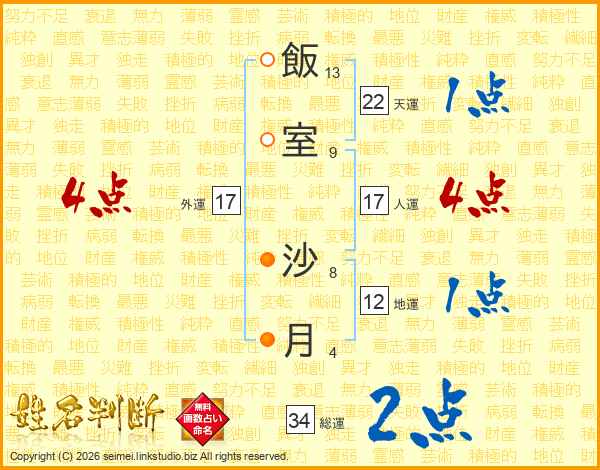 飯室沙月さんの総運は34画の2点!