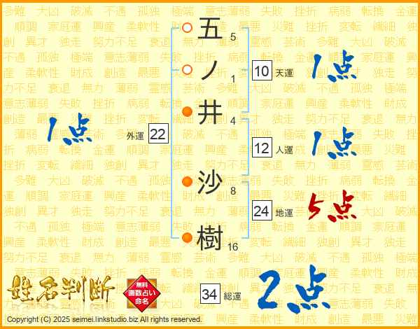 五ノ井沙樹さんの総運は34画の2点!
