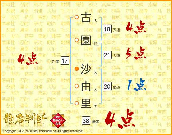 古園沙由里さんの総運は38画の4点!