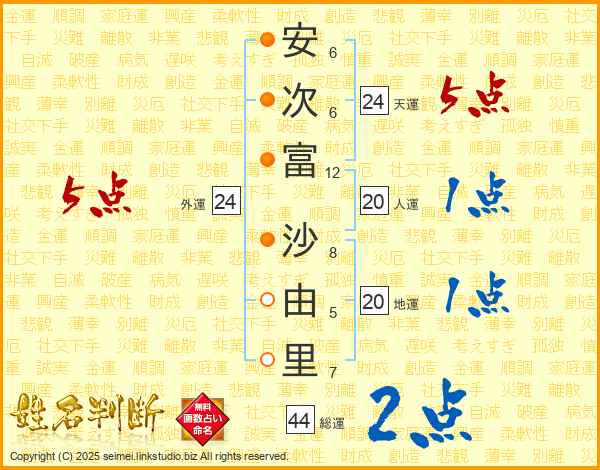 安次富沙由里さんの総運は44画の2点!