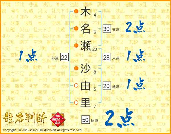 木名瀬沙由里さんの総運は50画の2点!