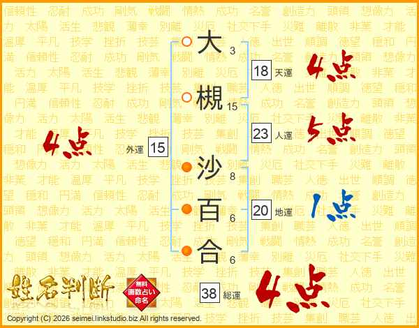 大槻沙百合さんの総運は38画の4点!