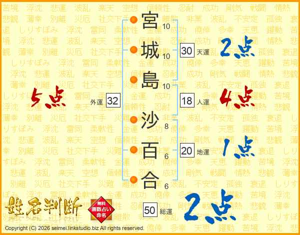 宮城島沙百合さんの外運は32画の5点!