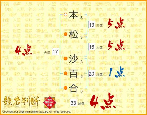 本松沙百合さんの総運は33画の4点!