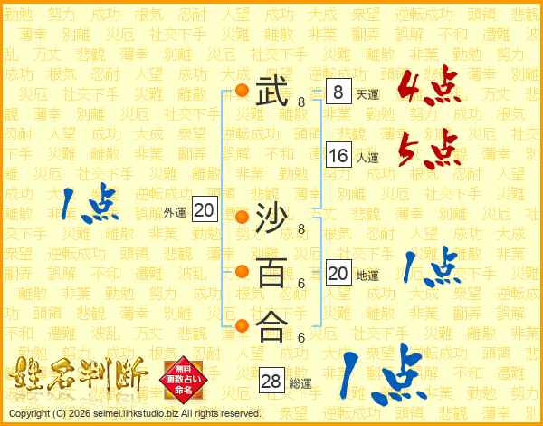 武沙百合さんの総運は28画の1点!
