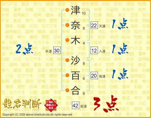津奈木沙百合さんの総運は42画の3点!
