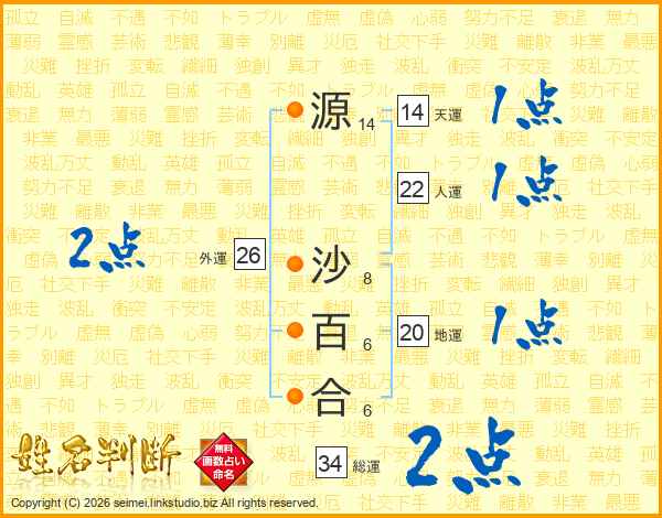 源沙百合さんの天運は14画の1点!