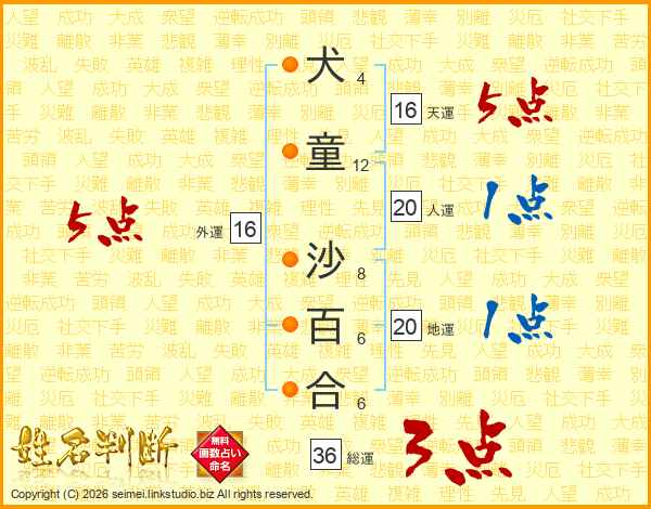 犬童沙百合さんの外運は16画の5点!