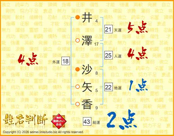 井澤沙矢香さんの天運は21画の5点!