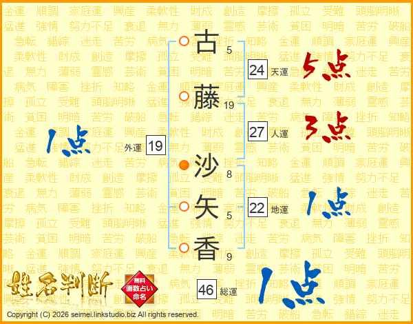 古藤沙矢香さんの総運は46画の1点!