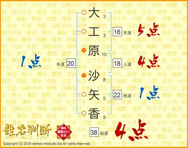 大工原沙矢香さんの総運は38画の4点!