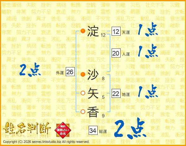 淀沙矢香さんの総運は34画の2点!