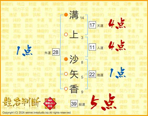 溝上沙矢香さんの総運は39画の5点!