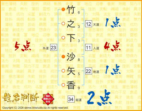 竹之下沙矢香さんの外運は23画の5点!