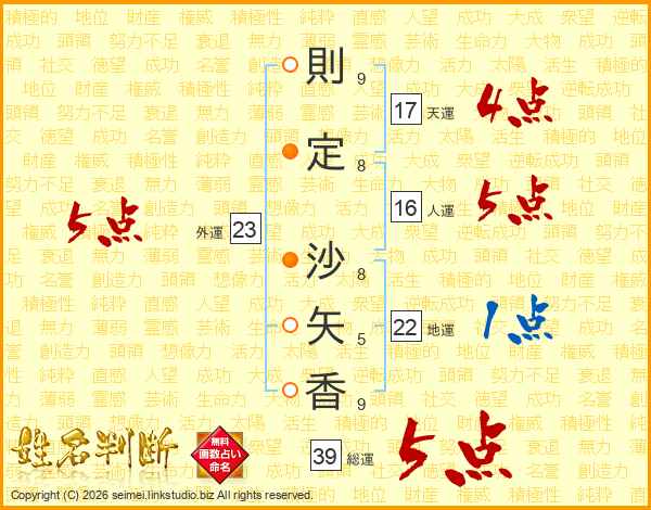 則定沙矢香さんの外運は23画の5点!