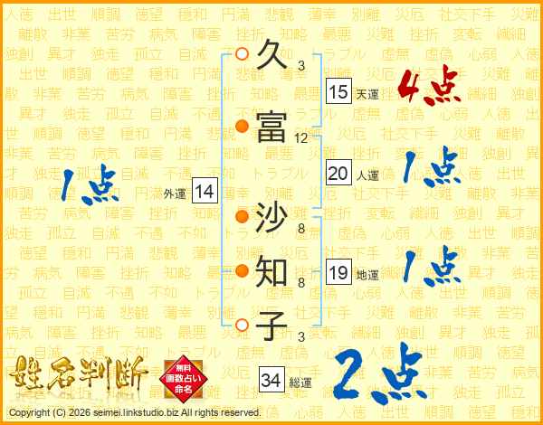 久富沙知子さんの外運は14画の1点!