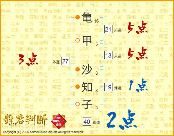 亀甲沙知子さんの総運は40画の2点!