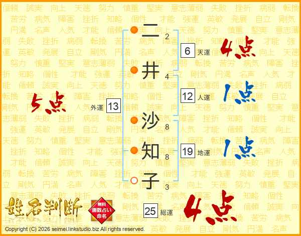 二(2画)井(4画) 沙(8画)知(8画)子(3画)