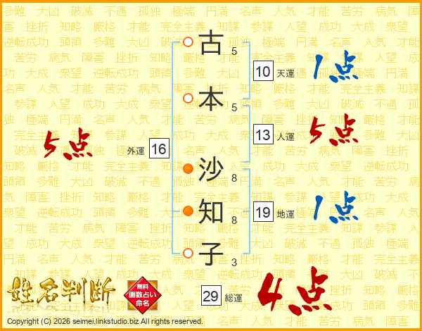古本沙知子さんの総運は29画の4点!
