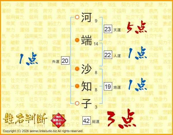 河端沙知子さんの総運は42画の3点!