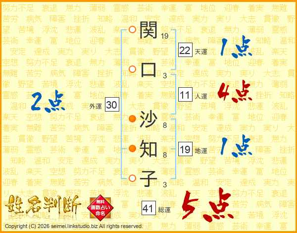 関口沙知子さんの総運は41画の5点!